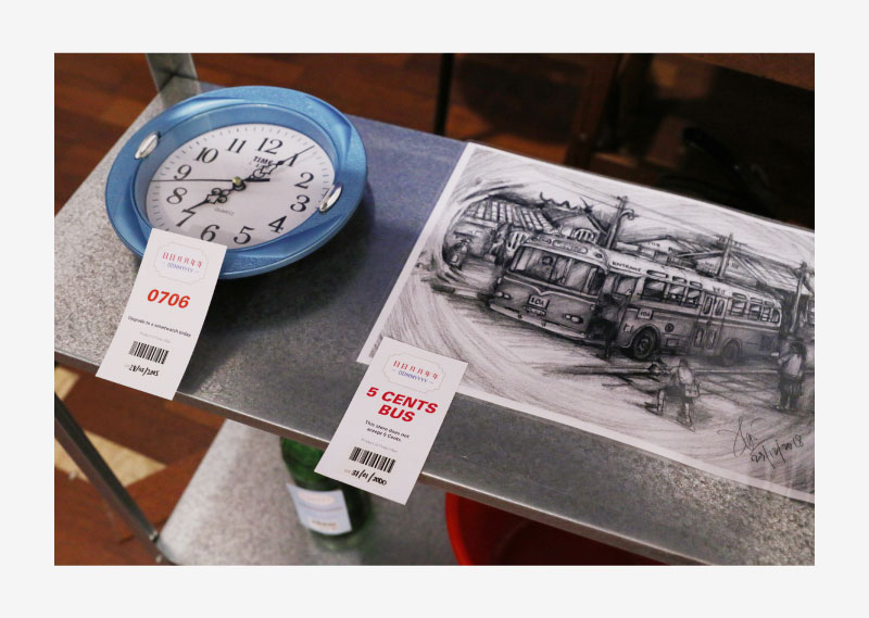 Some objects featured are: a 10-dollar bill a visitor holds onto for “luck”; a pestle and mortar to grind citronella leaves to bits (serves as insect repellent); a pail used to collect rainwater; clock used to complete a painting of sunrise. Each object reflects the “expiration” of lifestyles and culture, challenging the viewer to question the “value” of the Pulau Ubin community. Is there life after the expiry?