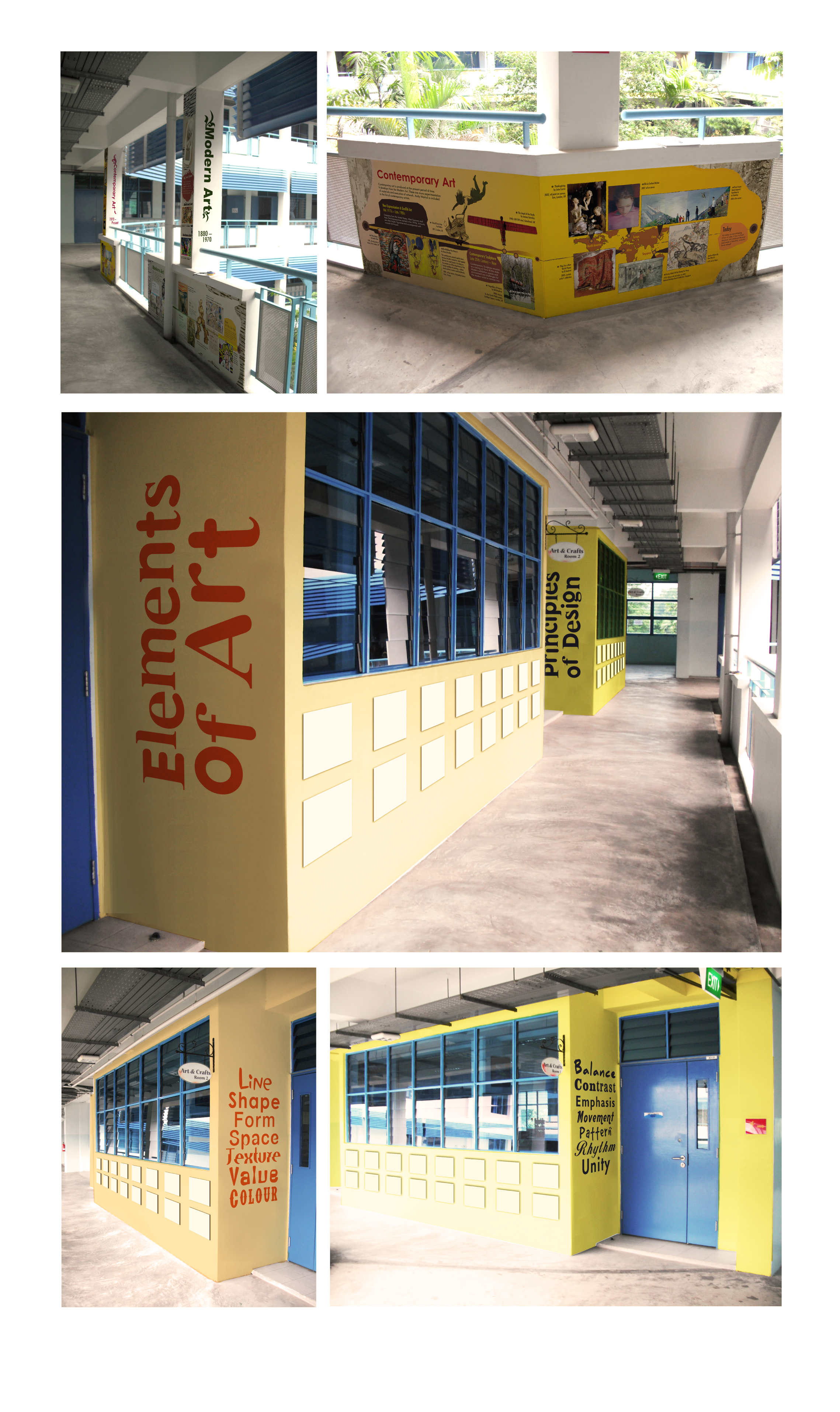 In 2013, I was tasked to design and conceptualise the wall designs for a Primary School. The school wanted designs that could be used as teaching materials for the students. Therefore, I proposed to create infographics for the students in accordance to the school's art curriculum. As the teachers had little knowledge of art, I had to be responsible for creating the content on the infographics.